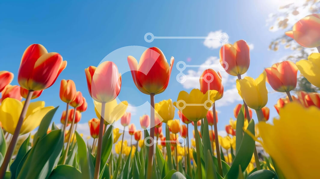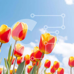 Intra Συλλεκτικό Ξύλινο Παζλ Plywood 4mm - Πεδίο με κόκκινες και κίτρινες τουλίπες με μπλε ουρανό Σε Ξύλινο Κουτί - Διαστάσεις: 10x10 cm – 25 κομμάτια