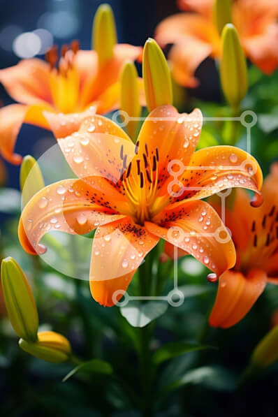 Intra Συλλεκτικό Ξύλινο Παζλ Plywood 4mm - Πορτοκαλί κρίνοι που ανθίζουν σε πράσινο χωράφι με σταγονίδια νερού Σε Ξύλινο Κουτί - Διαστάσεις: 10x10 cm – 25 κομμάτια