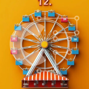 Intra Συλλεκτικό Ξύλινο Παζλ Plywood 4mm - Πολύχρωμη ρόδα με 12 γόνδολες σε πορτοκαλί φόντο Σε Ξύλινο Κουτί - Διαστάσεις Puzzle: 10x10 cm – 25 κομμάτια
