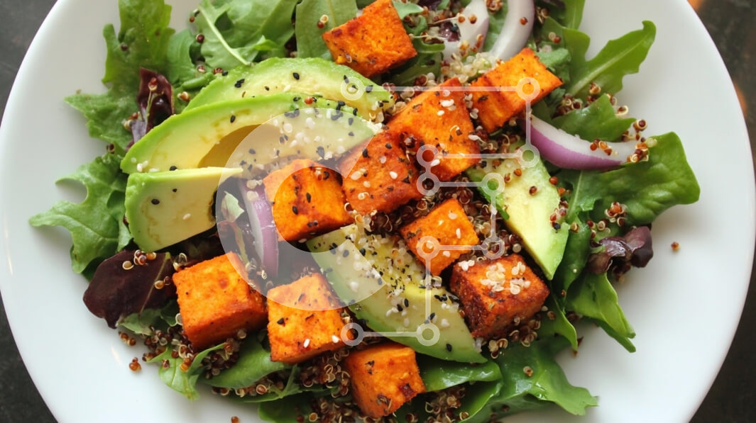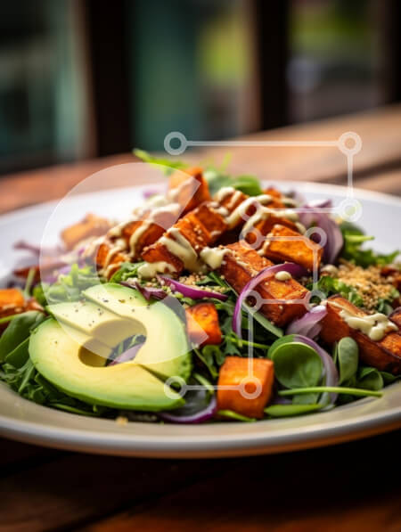 Intra Συλλεκτικό Ξύλινο Παζλ Plywood 4mm - Πολύχρωμη σαλάτα με γλυκοπατάτες και αβοκάντο Σε Ξύλινο Κουτί - Διαστάσεις: 10x10 cm – 25 κομμάτια