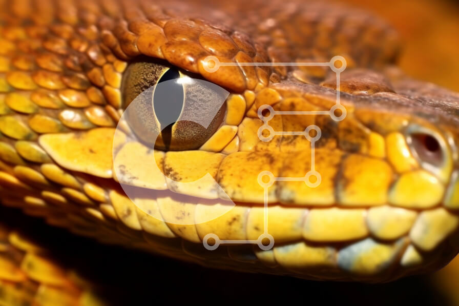 Intra Συλλεκτικό Ξύλινο Παζλ Plywood 4mm - Όμορφη κοντινή εικόνα του κεφαλιού ενός φιδιού με κίτρινες και καφέ κλίμακες Σε Ξύλινο Κουτί - Διαστάσεις: 10x10 cm – 25 κομμάτια
