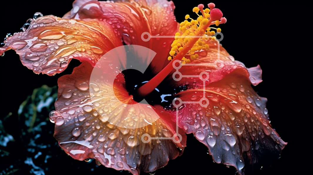 Intra Συλλεκτικό Ξύλινο Παζλ Plywood 4mm - Όμορφη κοντινή εικόνα του λουλουδιού ιβίσκου με σταγονίδια νερού σε πέταλα Σε Ξύλινο Κουτί - Διαστάσεις: 10x10 cm – 25 κομμάτια