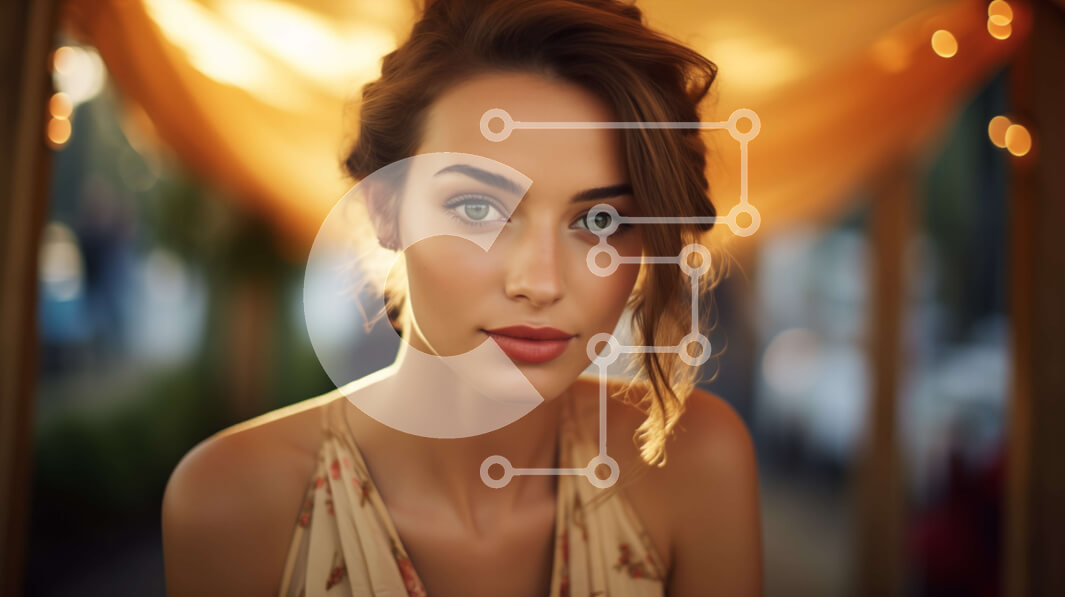 Intra Συλλεκτικό Ξύλινο Παζλ Plywood 4mm - Όμορφη νεαρή γυναίκα που χαμογελά στο ηλιοβασίλεμα στην οδό της πόλης Σε Ξύλινο Κουτί - Διαστάσεις Puzzle: 10x10 cm – 25 κομμάτια