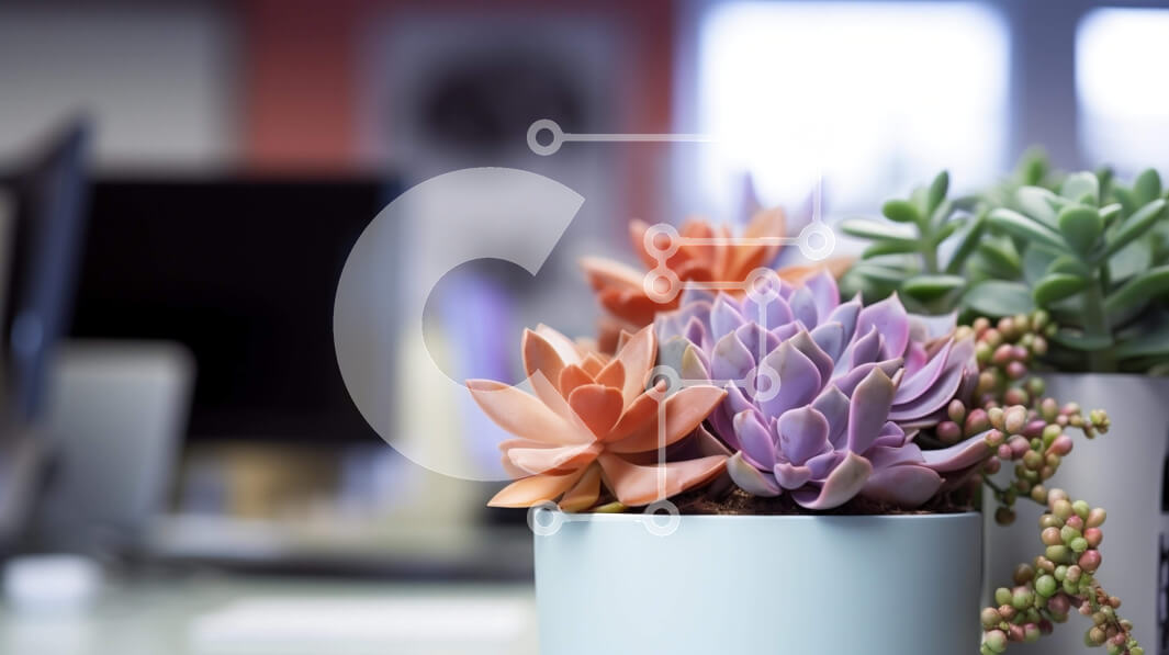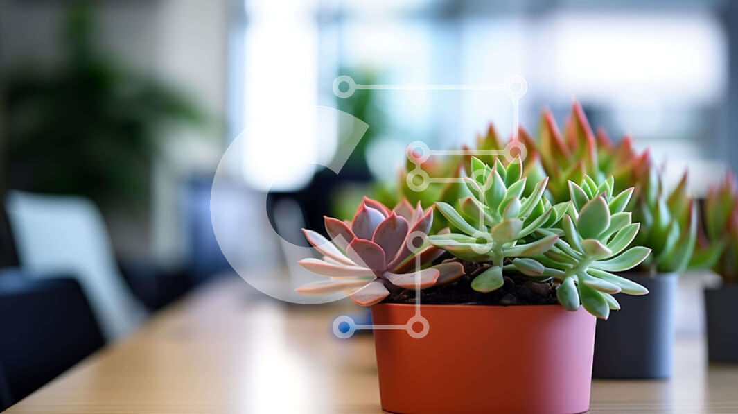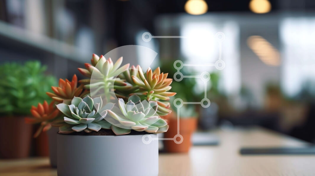 Intra Συλλεκτικό Ξύλινο Παζλ Plywood 4mm - Παχύφυτα σε γλάστρα σε περιβάλλον γραφείου Σε Ξύλινο Κουτί - Διαστάσεις Puzzle: 10x10 cm – 25 κομμάτια