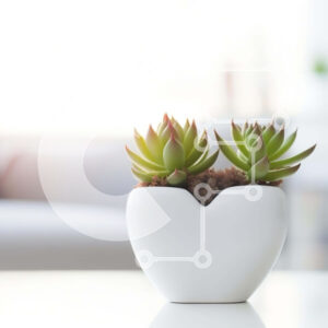 Intra Συλλεκτικό Ξύλινο Παζλ Plywood 4mm - Παχύφυτα σε μια λευκή γλάστρα φυτών σε ένα τραπέζι Σε Ξύλινο Κουτί - Διαστάσεις Puzzle: 10x10 cm – 25 κομμάτια