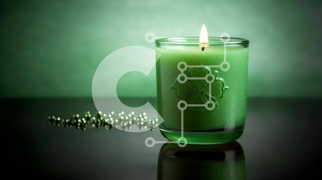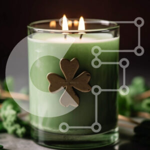 Intra Συλλεκτικό Ξύλινο Παζλ Plywood 4mm - Πράσινο κερί με φύλλα τριφυλλιού για την ημέρα του Αγίου Πατρικίου Σε Ξύλινο Κουτί - Διαστάσεις Puzzle: 10x10 cm – 25 κομμάτια
