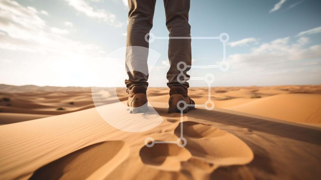 Intra Συλλεκτικό Ξύλινο Παζλ Plywood 4mm - Πρόσωπο που στέκεται στην έρημο με τους αμμόλοφους Σε Ξύλινο Κουτί - Διαστάσεις: 10x10 cm – 25 κομμάτια