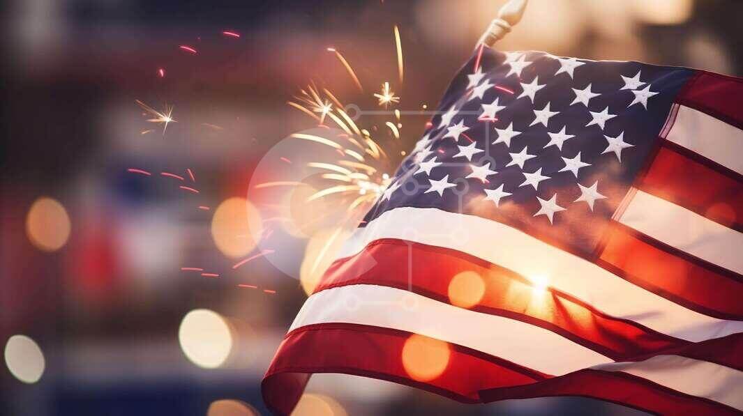 Intra Συλλεκτικό Ξύλινο Παζλ Plywood 4mm - Πατριωτική αμερικανική σημαία με πυροτεχνήματα και βεγγαλικά Σε Ξύλινο Κουτί - Διαστάσεις: 10x10 cm – 25 κομμάτια