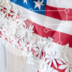 Intra Συλλεκτικό Ξύλινο Παζλ Plywood 4mm - Πατριωτική αμερικανική σημαία με λευκά λουλούδια Σε Ξύλινο Κουτί - Διαστάσεις Puzzle: 10x10 cm – 25 κομμάτια
