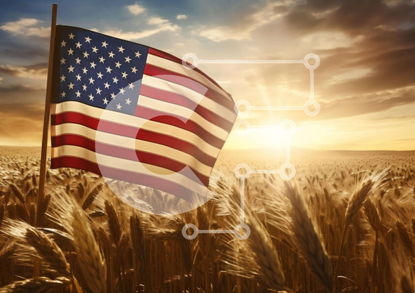 Intra Συλλεκτικό Ξύλινο Παζλ Plywood 4mm - Πατριωτική αμερικανική σημαία στο χωράφι σίτου στο ηλιοβασίλεμα Σε Ξύλινο Κουτί - Διαστάσεις: 10x10 cm – 25 κομμάτια