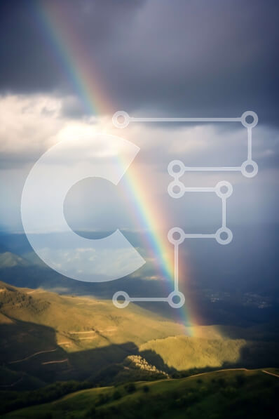 Intra Συλλεκτικό Ξύλινο Παζλ Plywood 4mm - Ουράνιο τόξο πάνω από την οροσειρά με το γαλάζιο του ουρανού και τα πράσινα δέντρα Σε Ξύλινο Κουτί - Διαστάσεις: 10x10 cm – 25 κομμάτια