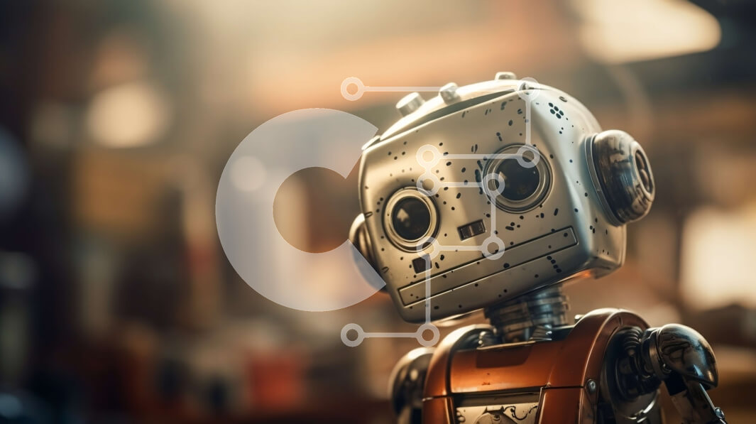 Intra Συλλεκτικό Ξύλινο Παζλ Plywood 4mm - Ρετρό ρομπότ που στέκεται σε ένα εργαστήριο με το φως του ήλιου Σε Ξύλινο Κουτί - Διαστάσεις Puzzle: 10x10 cm – 25 κομμάτια