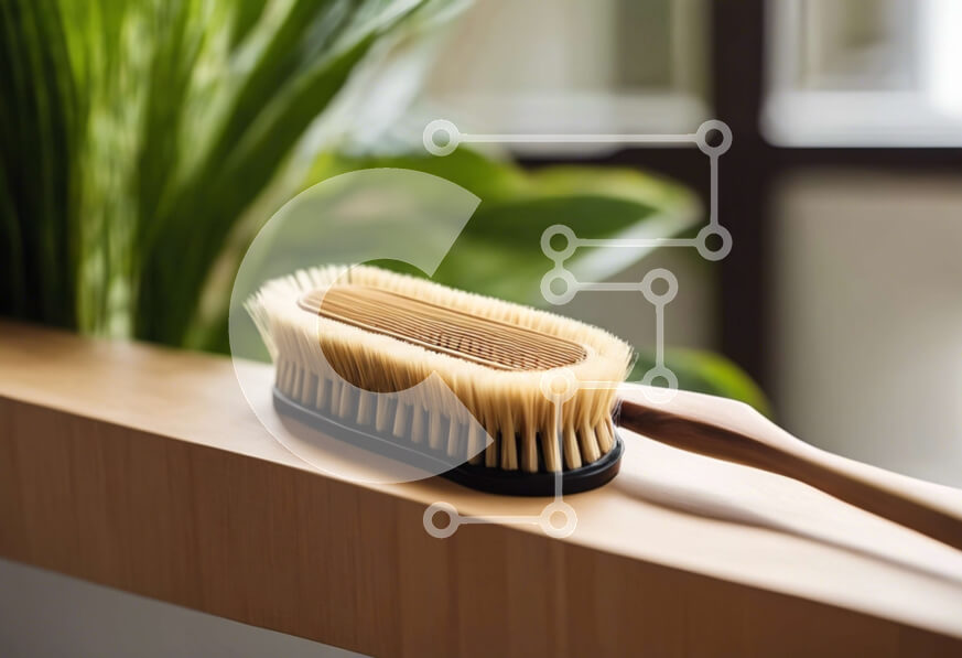 Intra Συλλεκτικό Ξύλινο Παζλ Plywood 4mm - Ξύλινη βούρτσα σε ανοιχτό ξύλινο τραπέζι με πράσινο φυτό στο φόντο Σε Ξύλινο Κουτί - Διαστάσεις: 10x10 cm – 25 κομμάτια