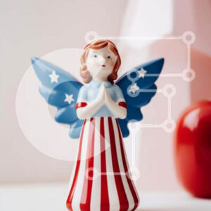 Intra Συλλεκτικό Ξύλινο Παζλ Plywood 4mm - Πατριωτικό ειδώλιο αγγέλου σε κόκκινο φόντο Σε Ξύλινο Κουτί - Διαστάσεις Puzzle: 10x10 cm – 25 κομμάτια