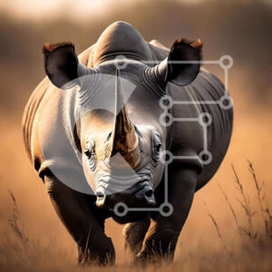 Intra Συλλεκτικό Ξύλινο Παζλ Plywood 4mm - Ρινόκερος στο βιότοπο λιβαδιών Σε Ξύλινο Κουτί - Διαστάσεις: 10x10 cm – 25 κομμάτια