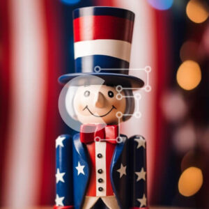 Intra Συλλεκτικό Ξύλινο Παζλ Plywood 4mm - Πατριωτικό ειδώλιο καρυοθραύστη θείου Σαμ σε φόντο αμερικανικής σημαίας Σε Ξύλινο Κουτί - Διαστάσεις: 10x10 cm – 25 κομμάτια