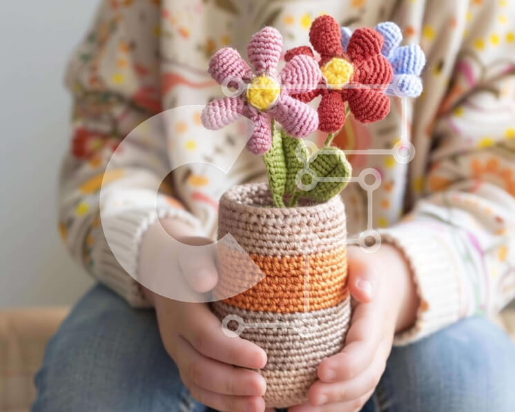 Intra Συλλεκτικό Ξύλινο Παζλ Plywood 4mm - Παιδί που κρατά κροσέ βάζο λουλουδιών Σε Ξύλινο Κουτί - Διαστάσεις Puzzle: 10x10 cm – 25 κομμάτια