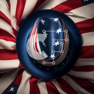 Intra Συλλεκτικό Ξύλινο Παζλ Plywood 4mm - Πατριωτικό καουμπόικο καπέλο με σχέδιο αμερικανικής σημαίας Σε Ξύλινο Κουτί - Διαστάσεις Puzzle: 10x10 cm – 25 κομμάτια