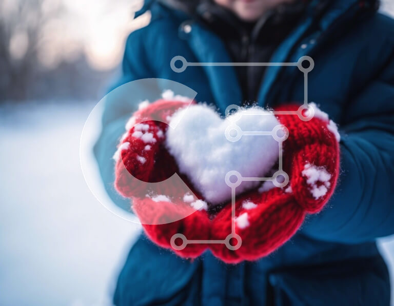 Intra Συλλεκτικό Ξύλινο Παζλ Plywood 4mm - Παιδί που κρατά την καρδιά του χιονιού στο χειμερινό τοπίο Σε Ξύλινο Κουτί - Διαστάσεις Puzzle: 10x10 cm – 25 κομμάτια