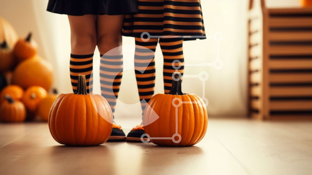Intra Συλλεκτικό Ξύλινο Παζλ Plywood 4mm - Παιδιά με αποκριάτικες στολές με κολοκύθες σε ξύλινο πάτωμα Σε Ξύλινο Κουτί - Διαστάσεις Puzzle: 10x10 cm – 25 κομμάτια