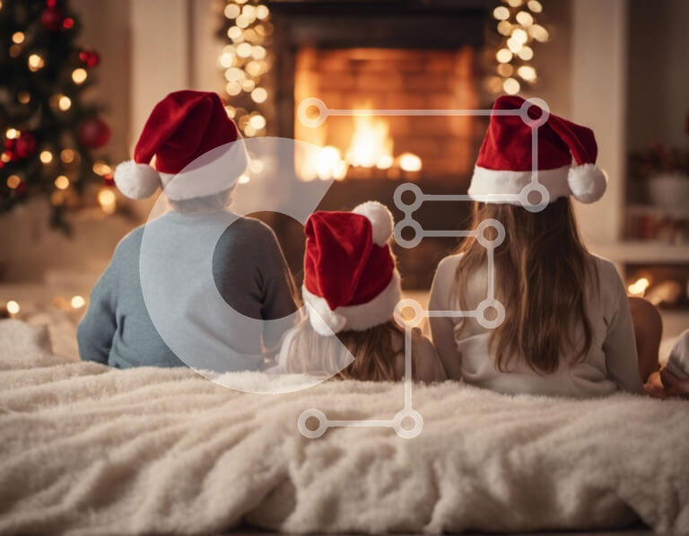 Intra Συλλεκτικό Ξύλινο Παζλ Plywood 4mm - Παιδιά με καπέλα Άγιου Βασίλη που κάθονται μπροστά από ένα τζάκι Σε Ξύλινο Κουτί - Διαστάσεις: 10x10 cm – 25 κομμάτια
