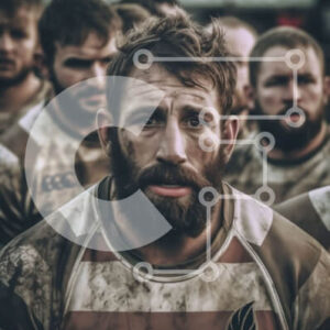 Intra Συλλεκτικό Ξύλινο Παζλ Plywood 4mm - Παίκτες ράγκμπι με ριγέ φανέλες που παίζουν σε λασπωμένο γήπεδο Σε Ξύλινο Κουτί - Διαστάσεις Puzzle: 10x10 cm – 25 κομμάτια