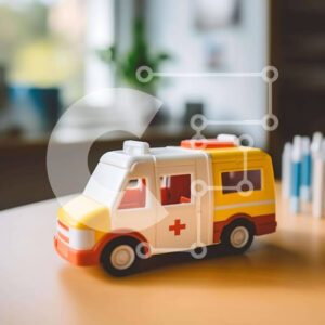 Intra Συλλεκτικό Ξύλινο Παζλ Plywood 4mm - Παιχνίδι όχημα έκτακτης ανάγκης σε ξύλινο τραπέζι με πράσινο φύλλωμα Σε Ξύλινο Κουτί - Διαστάσεις Puzzle: 10x10 cm – 25 κομμάτια
