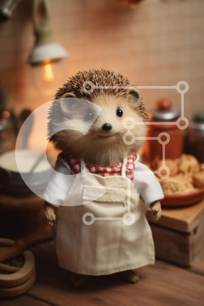 Intra Συλλεκτικό Ξύλινο Παζλ Plywood 4mm - Παιχνίδι σκαντζόχοιρος με στολή σεφ δίπλα σε είδη διατροφής Σε Ξύλινο Κουτί - Διαστάσεις: 10x10 cm – 25 κομμάτια