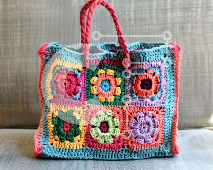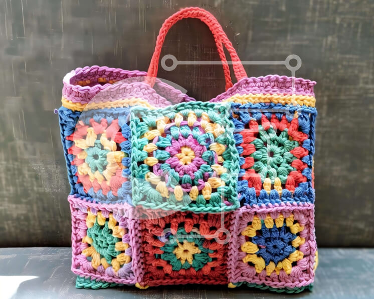 Intra Συλλεκτικό Ξύλινο Παζλ Plywood 4mm - Πολύχρωμη τσάντα με κροσέ σε ξύλινο τραπέζι Σε Ξύλινο Κουτί - Διαστάσεις: 10x10 cm – 25 κομμάτια