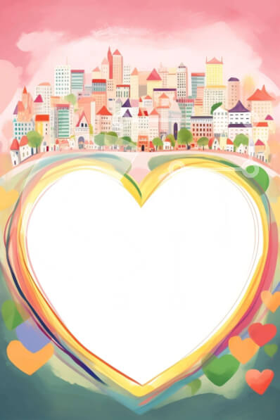 Intra Συλλεκτικό Ξύλινο Παζλ Plywood 4mm - Πλαίσιο σε σχήμα καρδιάς με πολύχρωμα κτίρια και καρδιές Σε Ξύλινο Κουτί - Διαστάσεις Puzzle: 10x10 cm – 25 κομμάτια