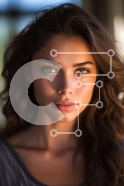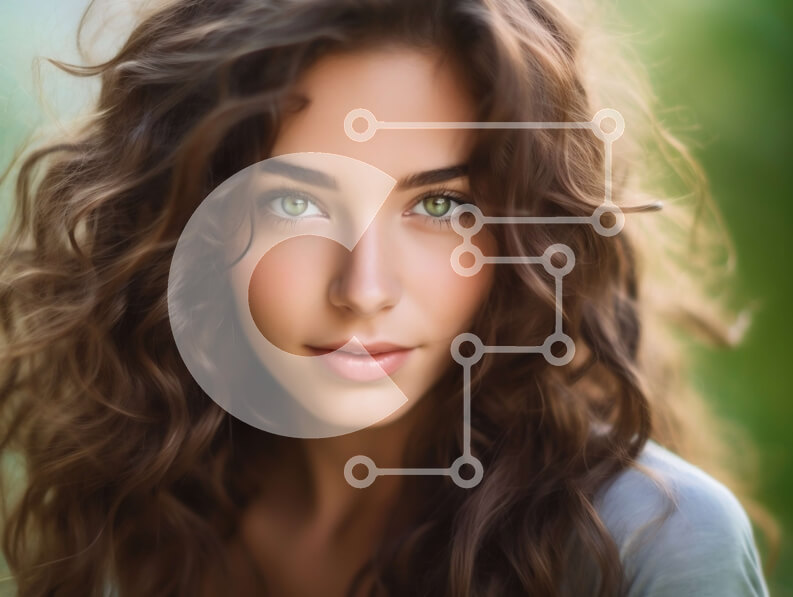 Intra Συλλεκτικό Ξύλινο Παζλ Plywood 4mm - Όμορφη νεαρή γυναίκα με μακριά, σγουρά καστανά μαλλιά κοιτάζοντας την κάμερα Σε Ξύλινο Κουτί - Διαστάσεις Puzzle: 10x10 cm – 25 κομμάτια