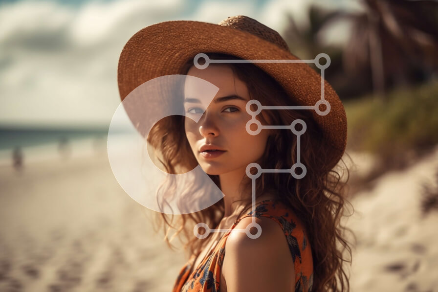 Intra Συλλεκτικό Ξύλινο Παζλ Plywood 4mm - Όμορφη νεαρή γυναίκα που απολαμβάνει την παραλία με φλοράλ φόρεμα και ψάθινο καπέλο Σε Ξύλινο Κουτί - Διαστάσεις Puzzle: 10x10 cm – 25 κομμάτια