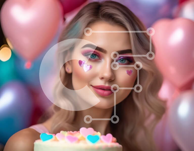 Intra Συλλεκτικό Ξύλινο Παζλ Plywood 4mm - Όμορφη νεαρή γυναίκα με ροζ και άσπρο μακιγιάζ που κρατά ένα διακοσμητικό κέικ Σε Ξύλινο Κουτί - Διαστάσεις Puzzle: 10x10 cm – 25 κομμάτια