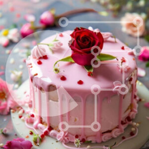 Intra Συλλεκτικό Ξύλινο Παζλ Plywood 4mm - Ροζ κέικ με τριαντάφυλλα και πέρλες Σε Ξύλινο Κουτί - Διαστάσεις: 10x10 cm – 25 κομμάτια