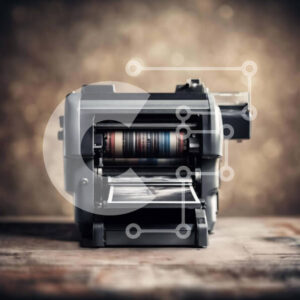 Intra Συλλεκτικό Ξύλινο Παζλ Plywood 4mm - Παλιομοδίτικος εκτυπωτής σε ξύλινο τραπέζι Σε Ξύλινο Κουτί - Διαστάσεις Puzzle: 10x10 cm – 25 κομμάτια