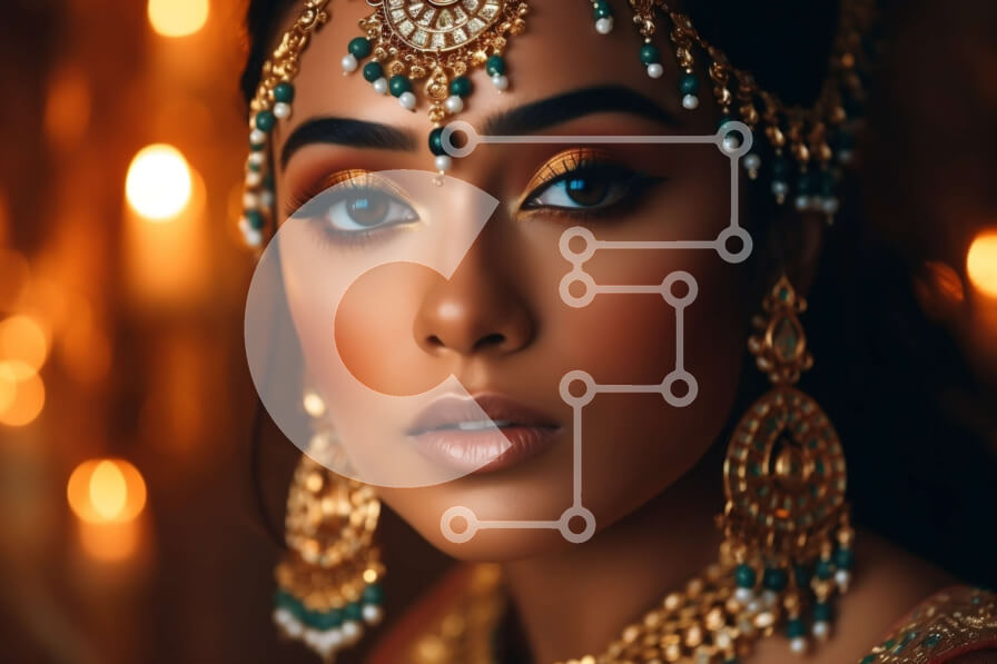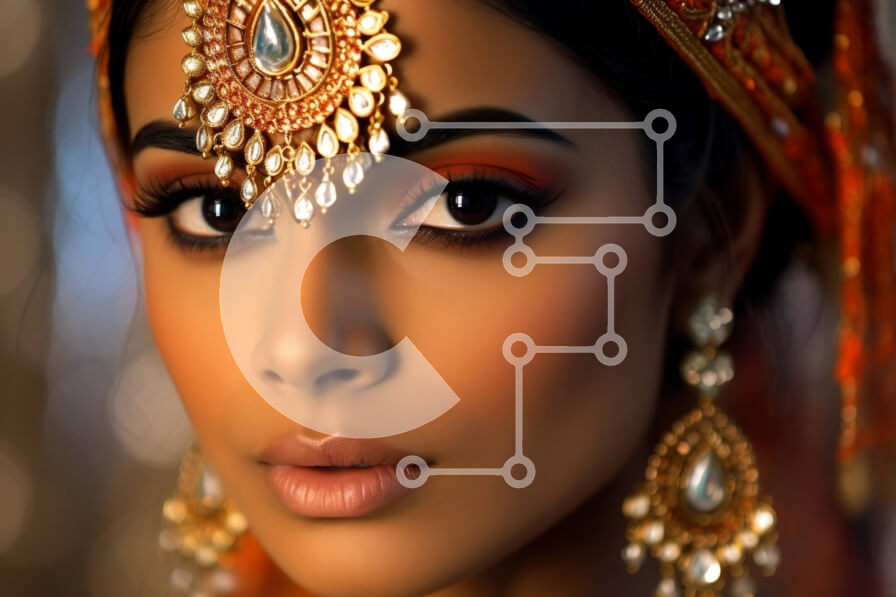 Intra Συλλεκτικό Ξύλινο Παζλ Plywood 4mm - Πανέμορφη εικόνα μιας γυναίκας που φοράει παραδοσιακά ινδικά κοσμήματα και μακιγιάζ Σε Ξύλινο Κουτί - Διαστάσεις Puzzle: 10x10 cm – 25 κομμάτια