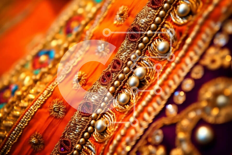 Intra Συλλεκτικό Ξύλινο Παζλ Plywood 4mm - Πανέμορφη εικόνα ενός παραδοσιακού ινδικού νυφικού - Lehenga σε πορτοκαλί με χρυσό κέντημα Σε Ξύλινο Κουτί - Διαστάσεις Puzzle: 10x10 cm – 25 κομμάτια