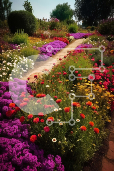 Intra Συλλεκτικό Ξύλινο Παζλ Plywood 4mm - Πανέμορφη εικόνα ενός πολύχρωμου κήπου με λουλούδια με μονοπάτι Σε Ξύλινο Κουτί - Διαστάσεις: 10x10 cm – 25 κομμάτια