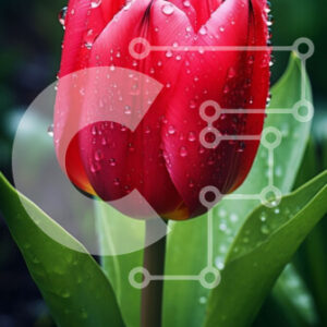 Intra Συλλεκτικό Ξύλινο Παζλ Plywood 4mm - Πανέμορφη εικόνα μιας κόκκινης τουλίπας με σταγονίδια νερού Σε Ξύλινο Κουτί - Διαστάσεις: 10x10 cm – 25 κομμάτια