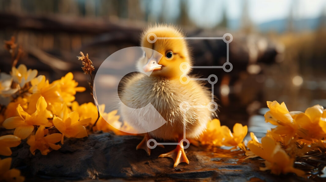 Intra Συλλεκτικό Ξύλινο Παζλ Plywood 4mm - Πάπια σε κούτσουρο σε υδάτινο σώμα που περιβάλλεται από κίτρινα λουλούδια Σε Ξύλινο Κουτί - Διαστάσεις: 10x10 cm – 25 κομμάτια
