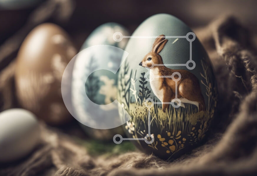 Intra Συλλεκτικό Ξύλινο Παζλ Plywood 4mm - Πασχαλινά αυγά με σχέδια κουνελιών σε κλαδάκια και χόρτα Σε Ξύλινο Κουτί - Διαστάσεις: 10x10 cm – 25 κομμάτια