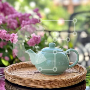 Intra Συλλεκτικό Ξύλινο Παζλ Plywood 4mm - Παστέλ πράσινη τσαγιέρα με ροζ λουλούδια Σε Ξύλινο Κουτί - Διαστάσεις: 10x10 cm – 25 κομμάτια