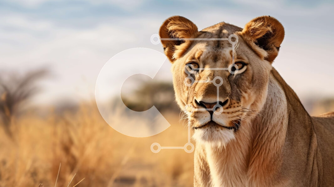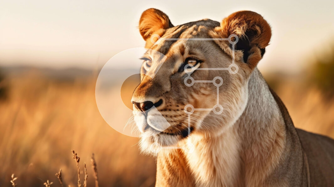 Intra Συλλεκτικό Ξύλινο Παζλ Plywood 4mm - Περίεργο λιοντάρι σε ένα χωράφι με ψηλό ξερό γρασίδι Σε Ξύλινο Κουτί - Διαστάσεις: 10x10 cm – 25 κομμάτια