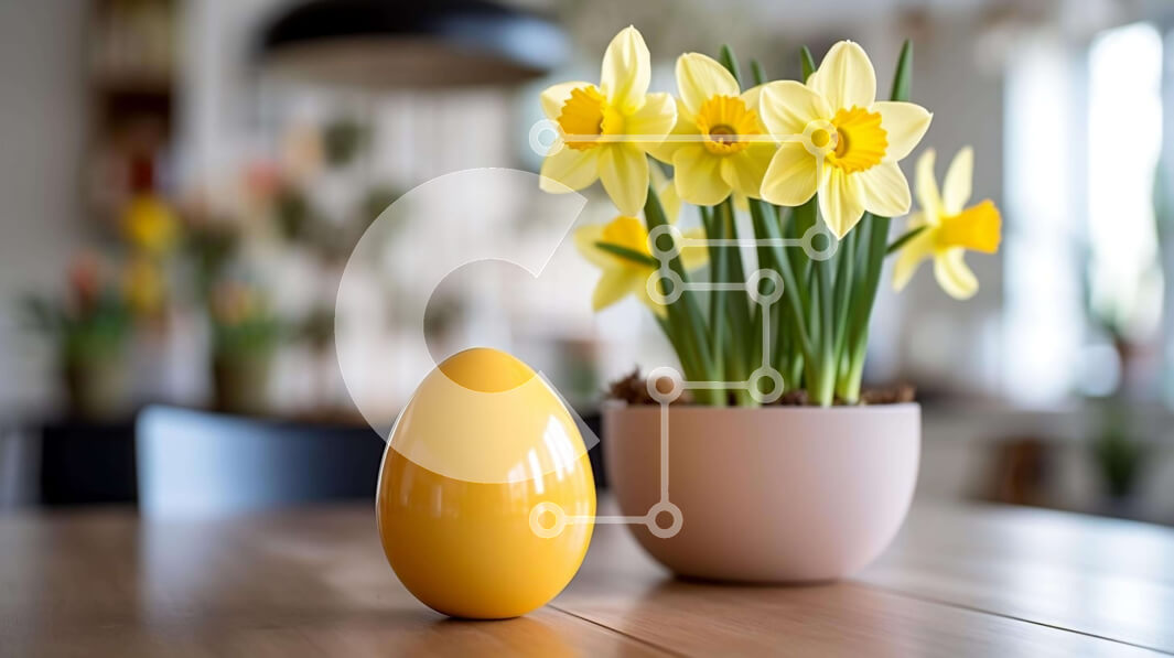 Intra Συλλεκτικό Ξύλινο Παζλ Plywood 4mm - Πασχαλινό αυγό και κίτρινα λουλούδια στο τραπέζι Σε Ξύλινο Κουτί - Διαστάσεις: 10x10 cm – 25 κομμάτια