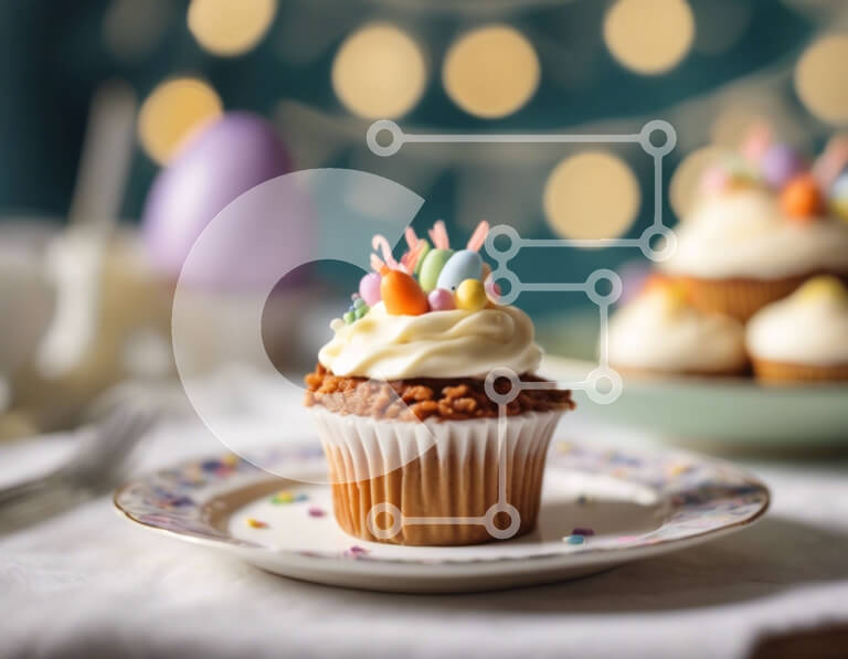 Intra Συλλεκτικό Ξύλινο Παζλ Plywood 4mm - Πασχαλινό Cupcake με λαγουδάκι και γιορτινή διακόσμηση Σε Ξύλινο Κουτί - Διαστάσεις: 10x10 cm – 25 κομμάτια