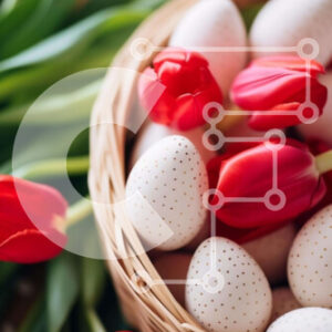 Intra Συλλεκτικό Ξύλινο Παζλ Plywood 4mm - Πασχαλινό καλάθι με αυγά και κόκκινες τουλίπες Σε Ξύλινο Κουτί - Διαστάσεις: 10x10 cm – 25 κομμάτια