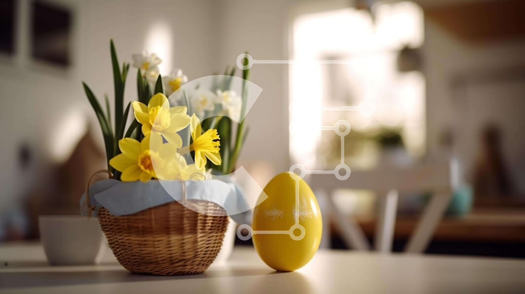 Intra Συλλεκτικό Ξύλινο Παζλ Plywood 4mm - Πασχαλινό καλάθι με ασφόδελους και πασχαλινό αυγό Σε Ξύλινο Κουτί - Διαστάσεις Puzzle: 10x10 cm – 25 κομμάτια