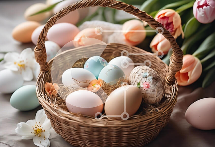 Intra Συλλεκτικό Ξύλινο Παζλ Plywood 4mm - Πασχαλινό καλάθι αυγών με φρέσκα λουλούδια Σε Ξύλινο Κουτί - Διαστάσεις: 10x10 cm – 25 κομμάτια