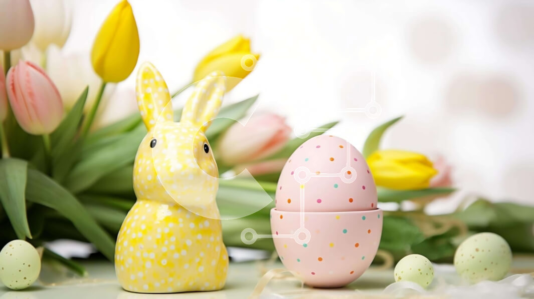 Intra Συλλεκτικό Ξύλινο Παζλ Plywood 4mm - Πασχαλινό λαγουδάκι και αυγό με πολύχρωμες τουλίπες Σε Ξύλινο Κουτί - Διαστάσεις: 10x10 cm – 25 κομμάτια
