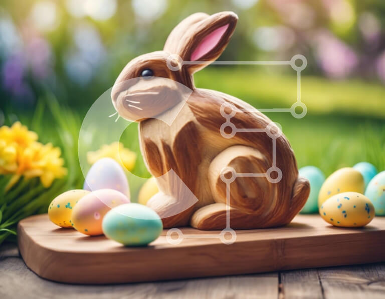 Intra Συλλεκτικό Ξύλινο Παζλ Plywood 4mm - Πασχαλινό λαγουδάκι και αυγά σε ξύλινο τραπέζι Σε Ξύλινο Κουτί - Διαστάσεις: 10x10 cm – 25 κομμάτια